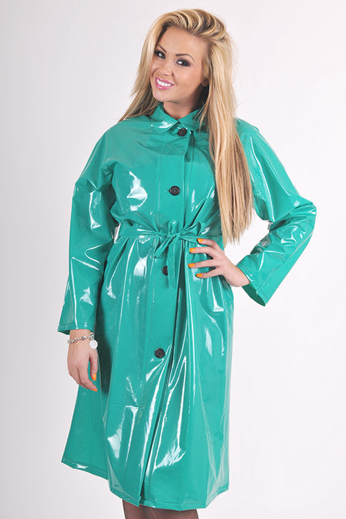 Late 1950s & 60s Style "Retro Coat Rain Mac" in Green Shiny by Elements Rainwear