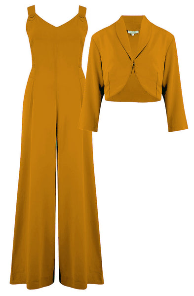 The "Lana" Palazzo Jump Suit & Bolero 2pc Set in Mustard, Easy To Wear Vintage Style