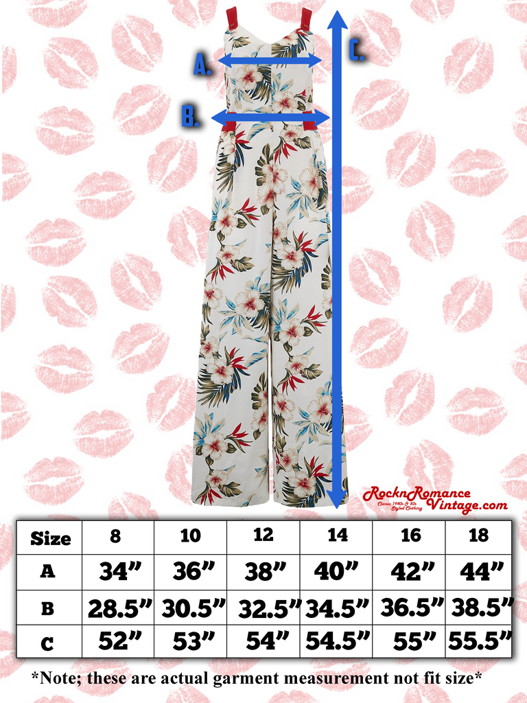 Keep comfortable whether you’re on a day out, or dancing the night away to those rockin tunes. Classy & Casual, this is the perfect do it all jumpsuit whatever your occasion.. Dress your outfit up or down to your desired taste, keep it simple and let the outfit do the talking or accessorise to give looks such as Rockabilly, Pinup, Classic/Authentic..