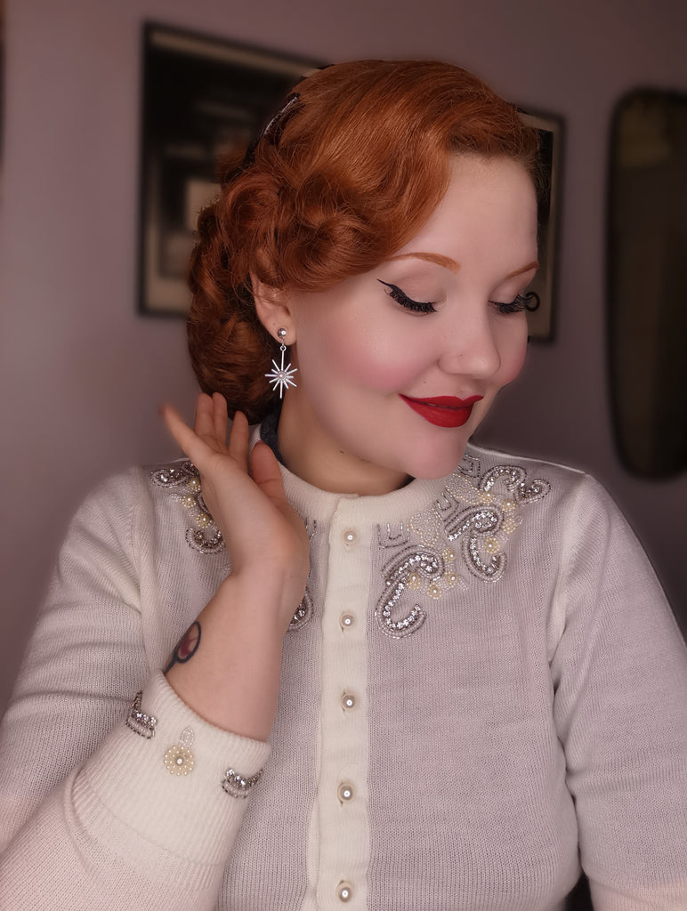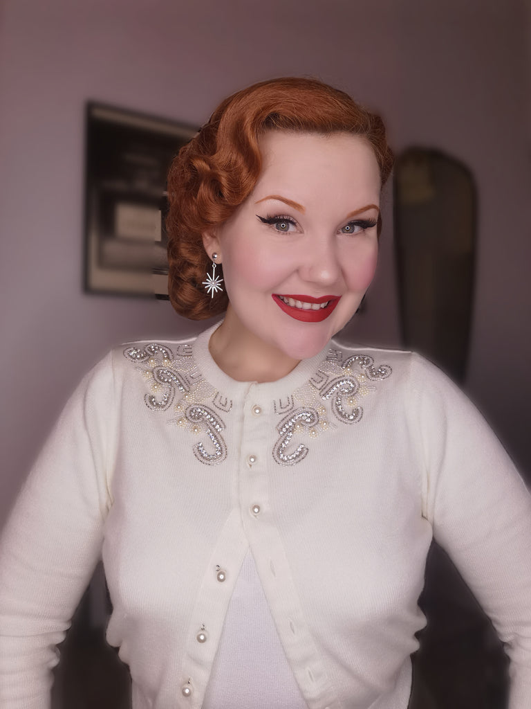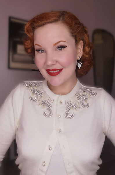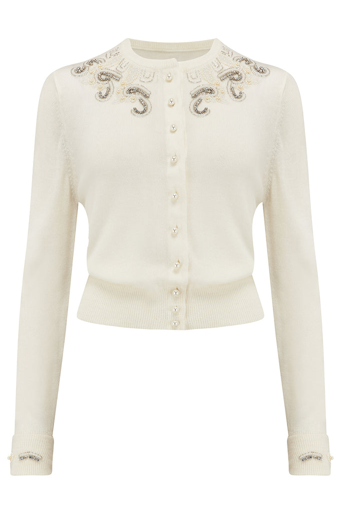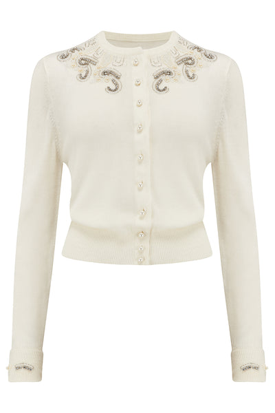 The Beaded Cardigan in Cream, Stunning 1940s Vintage Style