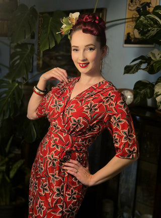 The “Evelyn" Wiggle Dress in Secret Garden Print, True 1950s Vintage Style