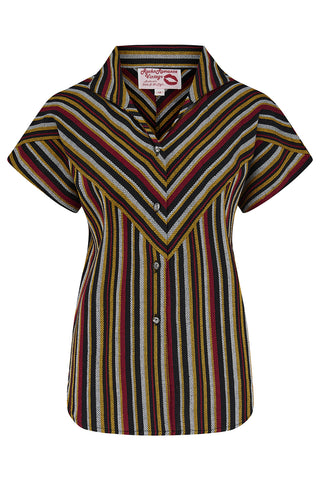 **Limited Edition** The "Maisy" Tuck in or Tie Up Blouse in 100% Cotton Black Multi Stripe, Classic Vintage Western Style