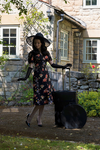 "Roma" Dress in Black Mayflower, Authentic & Classic 1940's Vintage Inspired Style