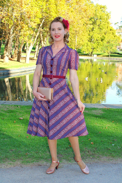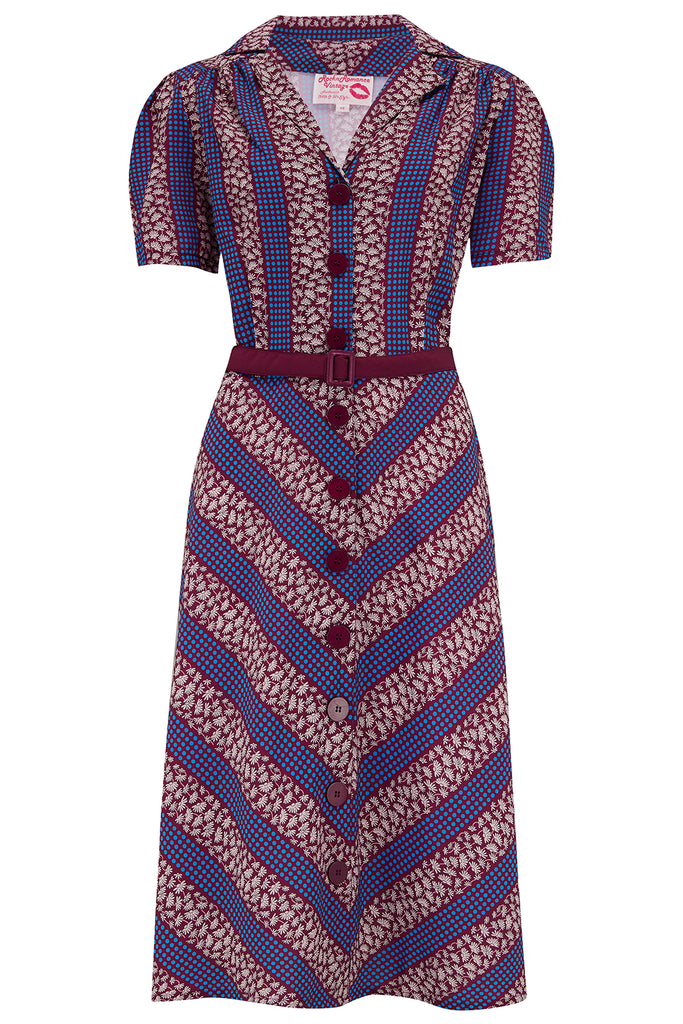 Straight from our vintage style archive, this was a firm favourite from the moment we saw it, The Charlene Shirtwaister Dress.. An absolute winner in the 1940s, 50s as it is Today.. With its simple vintage lines, this effortless piece hugs in all the right places; whilst letting you have the freedom to move in whatever way you want, daytime or night! The true vintage style and contrasting natural wood buttons & belt really set this beauty off.