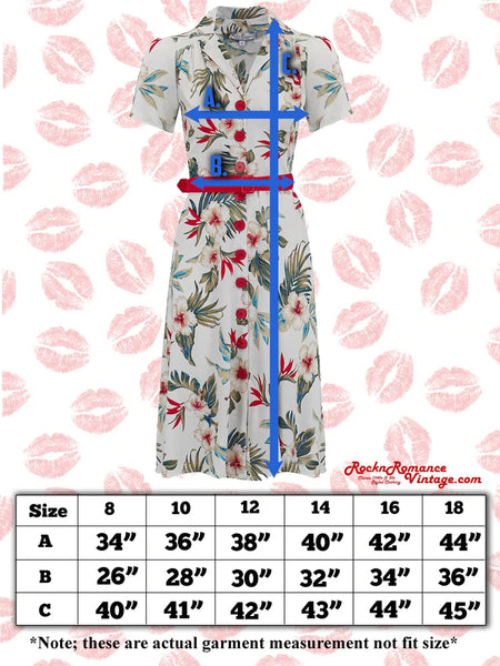 The iconic 1950s print is a direct copy of a true vintage fabric we have in our archive. The authentic Poly Crepe fabric hangs beautifully & is super soft to the touch and easy to care for too, just machine wash at 30 degrees.. We are that confident you will simply adore this item we are even giving you a full 14 day, 100% satisfaction or your money back Guarantee.. What more is there to love.. ?