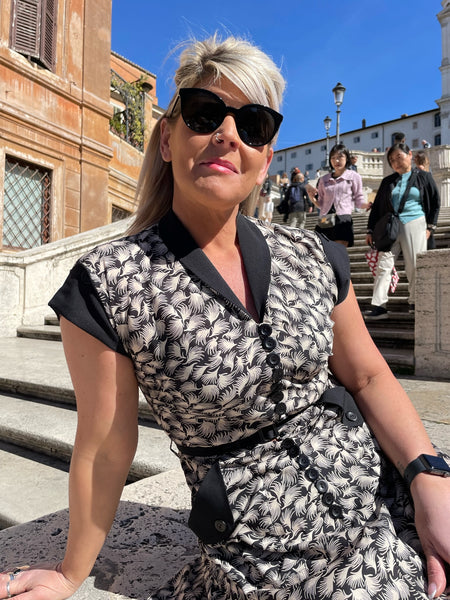 The iconic 1950s print is a direct copy of a true vintage fabric we have in our archive. The authentic Poly Crepe fabric hangs beautifully & is super soft to the touch and easy to care for too, just machine wash at 30 degrees.. We are that confident you will simply adore this item we are even giving you a full 14 day, 100% satisfaction or your money back Guarantee.. What more is there to love.. ?