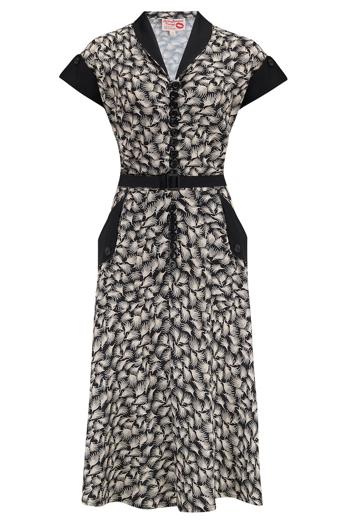 The "Casey" Dress in Black Whisp Print, True & Authentic 1950s Vintage Style