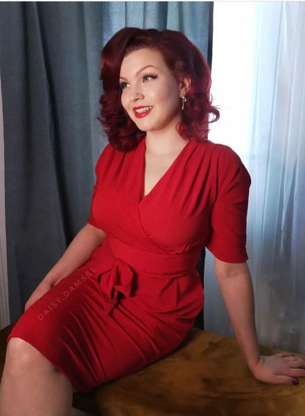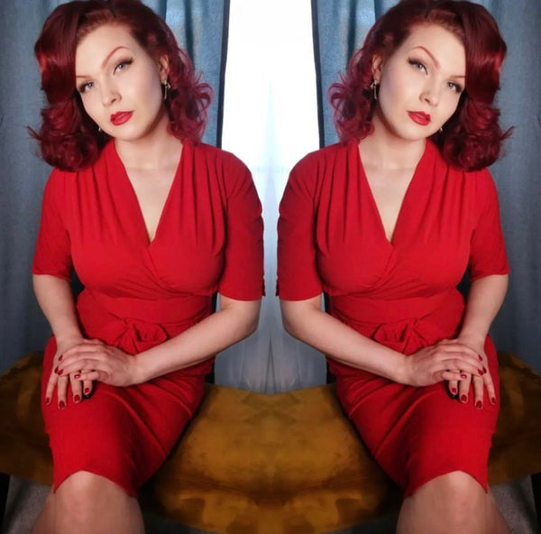 The “Evelyn" Wiggle Dress in Red, True Late 40s Early 50s Vintage Style