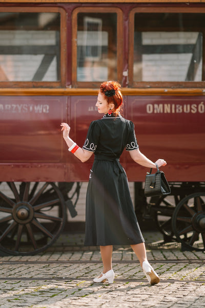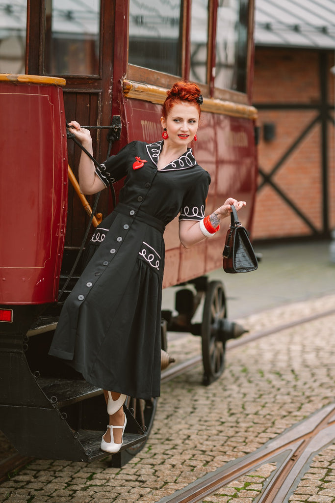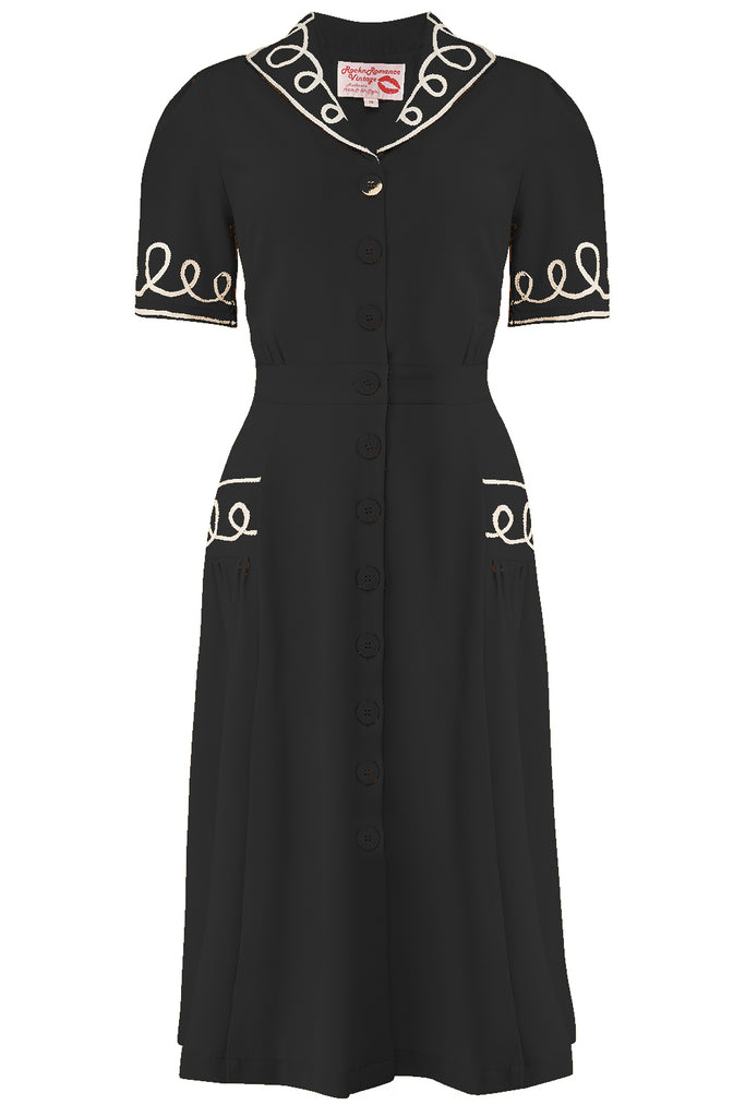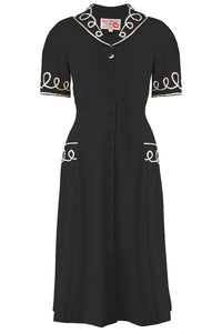 The "Loopy-Lou" Shirtwaister Dress in Black with White Contrast RicRac, True 1950s Vintage Style