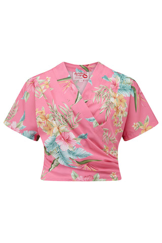 The "Darla" Short Sleeve Wrap Blouse in Secret Garden Print, True Late 1940s Vintage Style