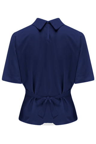 The "Darla" Short Sleeve Wrap Blouse in Navy Ditzy, True Late 1940s Vintage Style
