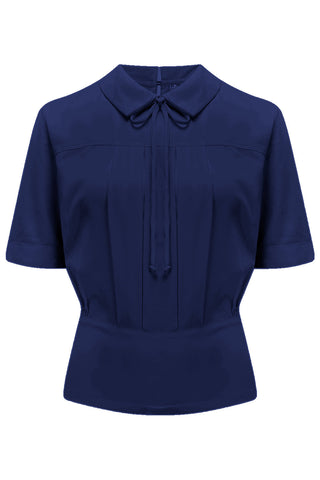 Poppy Long Sleeve Blouse in Navy Polka, Authentic & Classic 1940s Vintage Style By The Seamstress of Bloomsbury