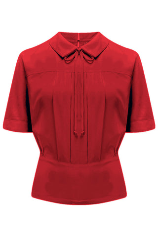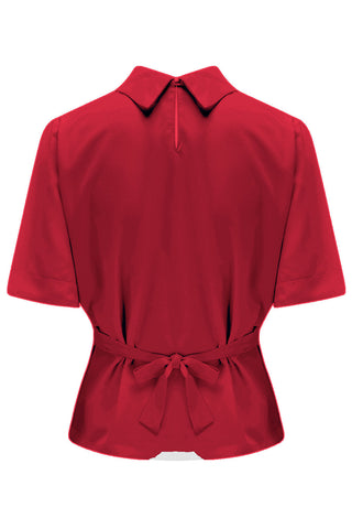 The "Polly" Long Sleeve Blouse in Red, Classic 1940s Vintage Style