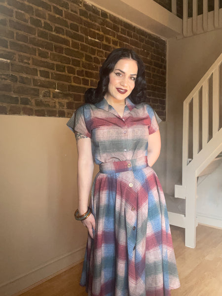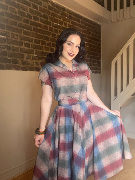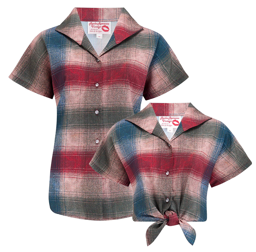 Tuck in or Tie Up "Maria" Blouse in Cotswold Check Print, Authentic 1950s