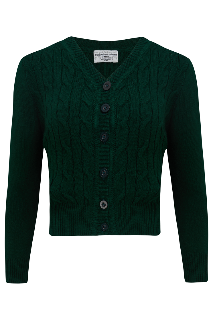 Cable Knit Cardigan in Green, Stunning 1940s True Vintage Style