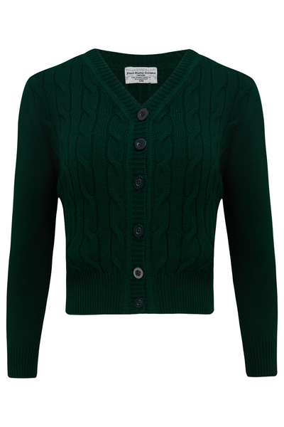 A truly sensational cable knit cardigan that can be warn easily with any casual 1940s or 50s look.. Equally at home with a pair of comfy jeans and a  pair of flats for a really relaxed look..  this is a sure classic winner. Made with love & quality just like the originals, this great little item is just perfect for daytime wear or evening, work or play .. it lends itself to styles such as 1940s, 1950s Rock n Roll, Pin Up, Rockabilly ... It is simply a must have item xx