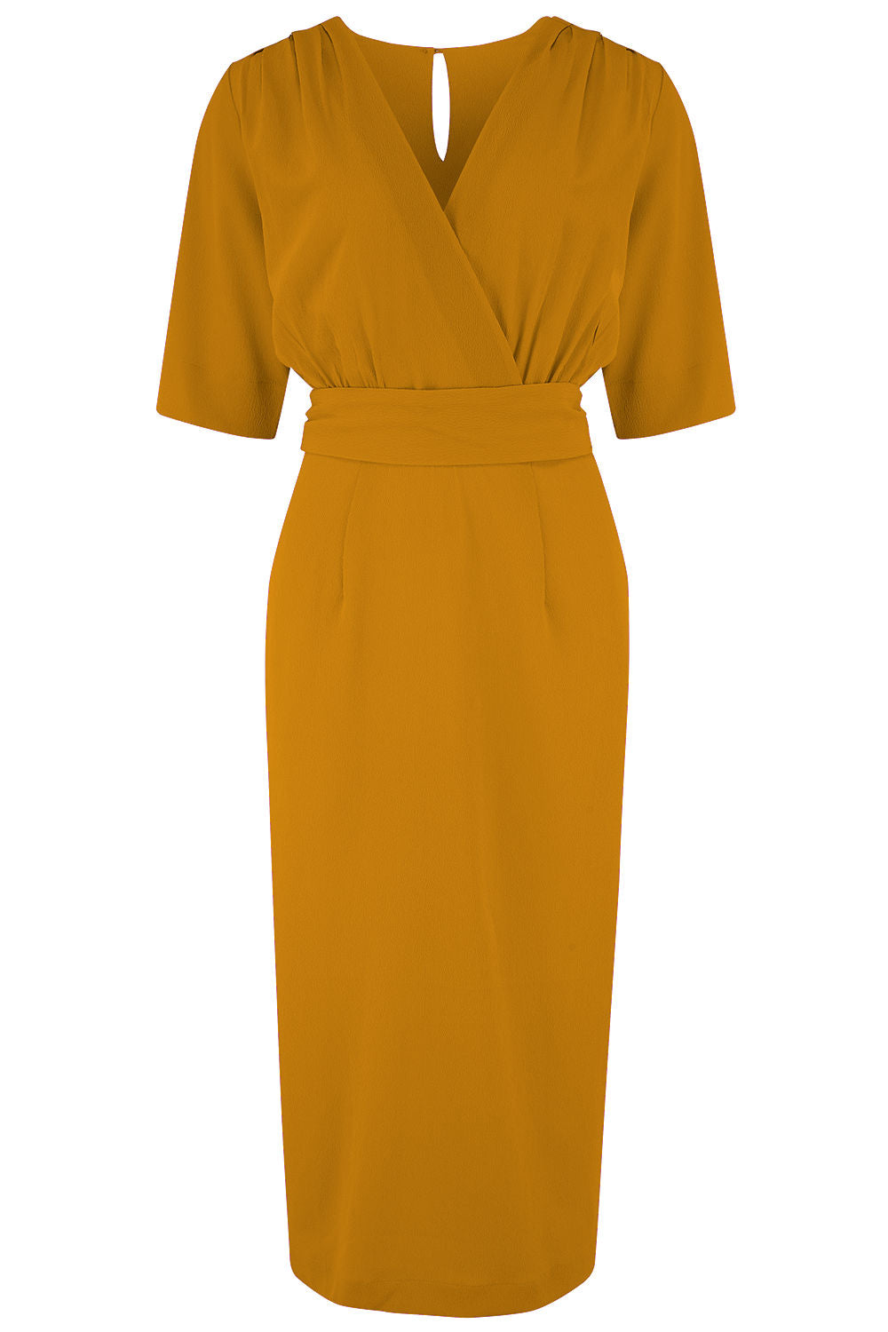 The “Evelyn" Wiggle Dress in Mustard, True Late 40s Early 50s Vintage Style