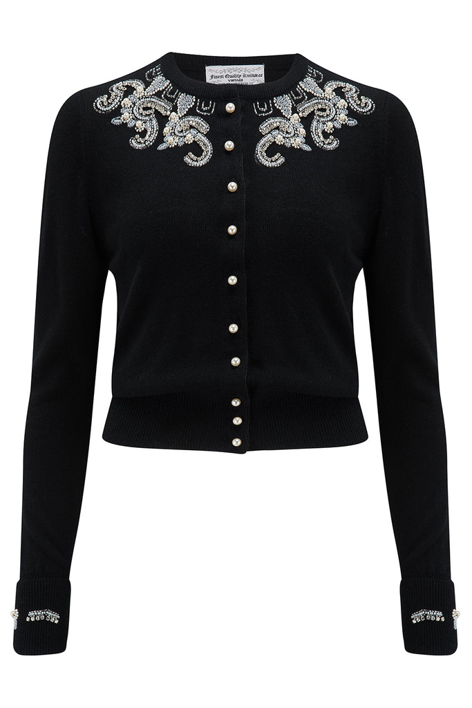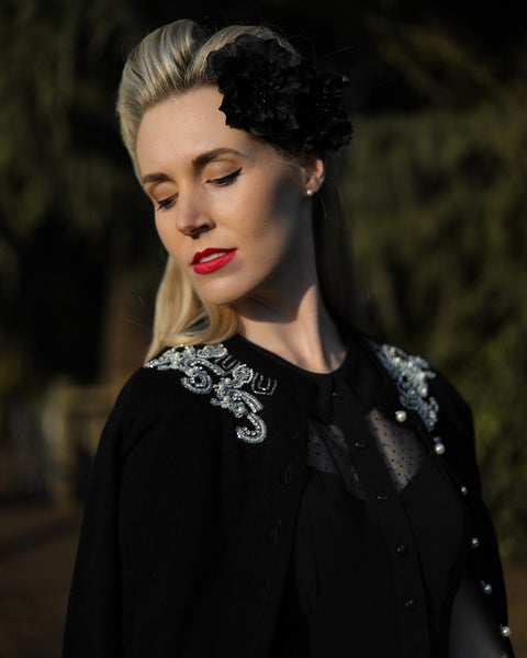 The Beaded Cardigan in Black, Stunning 1940s Vintage Style