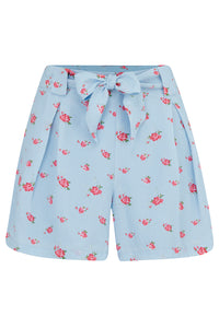 "Emma" vintage styled Tap Shorts in Powder Blue Rose