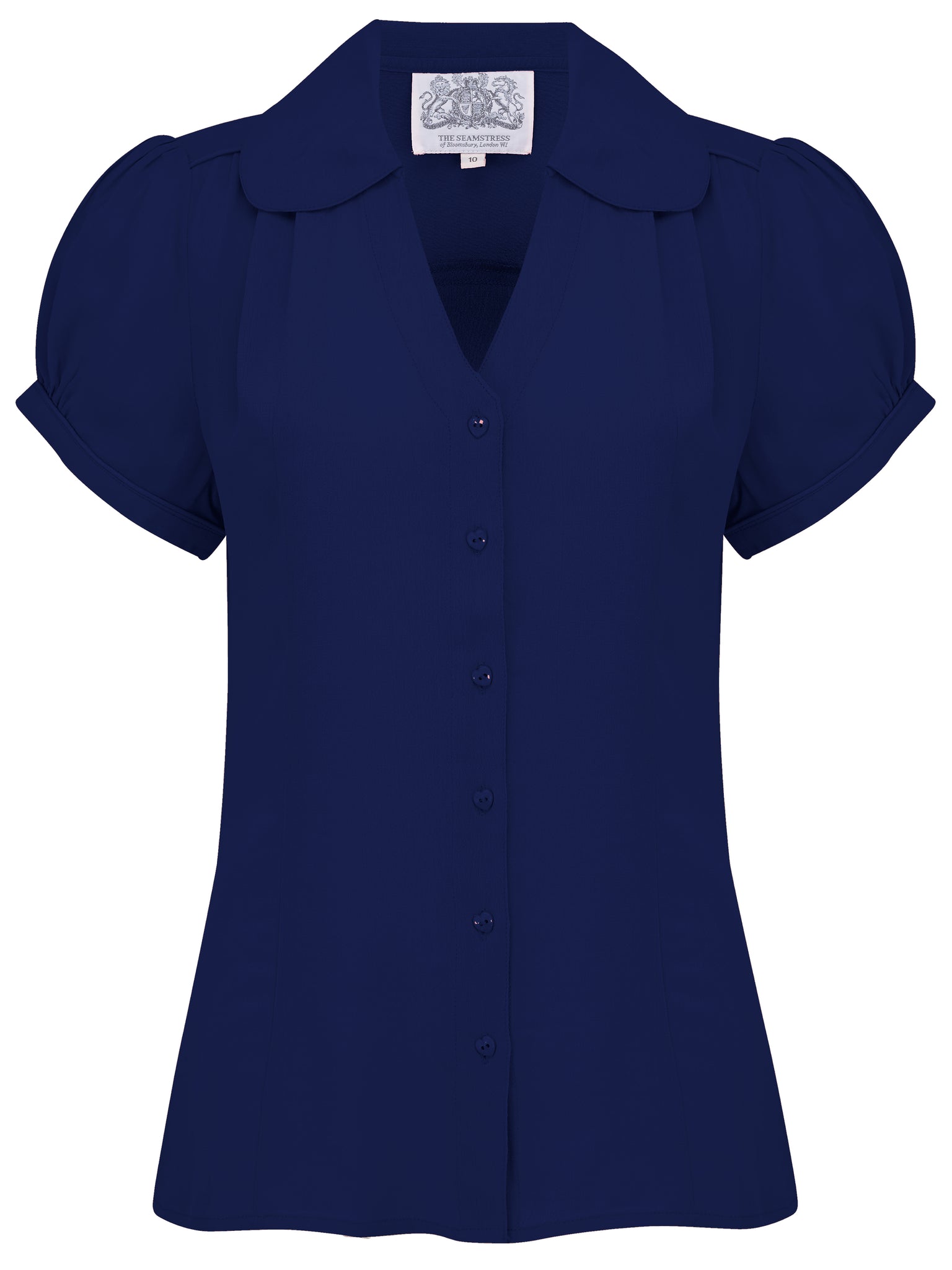 "Judy" Blouse in Navy, Classic 1940s Vintage Style