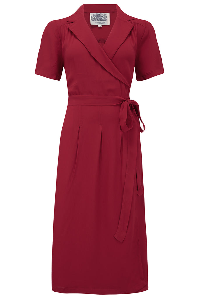 "Peggy" Wrap Dress in Windsor Wine, Classic 1940s Vintage Style