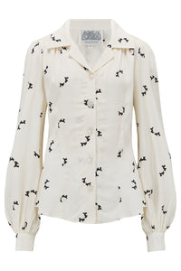 Poppy Long Sleeve Blouse in Cream Doggy, Authentic & Classic 1940s Vintage Style