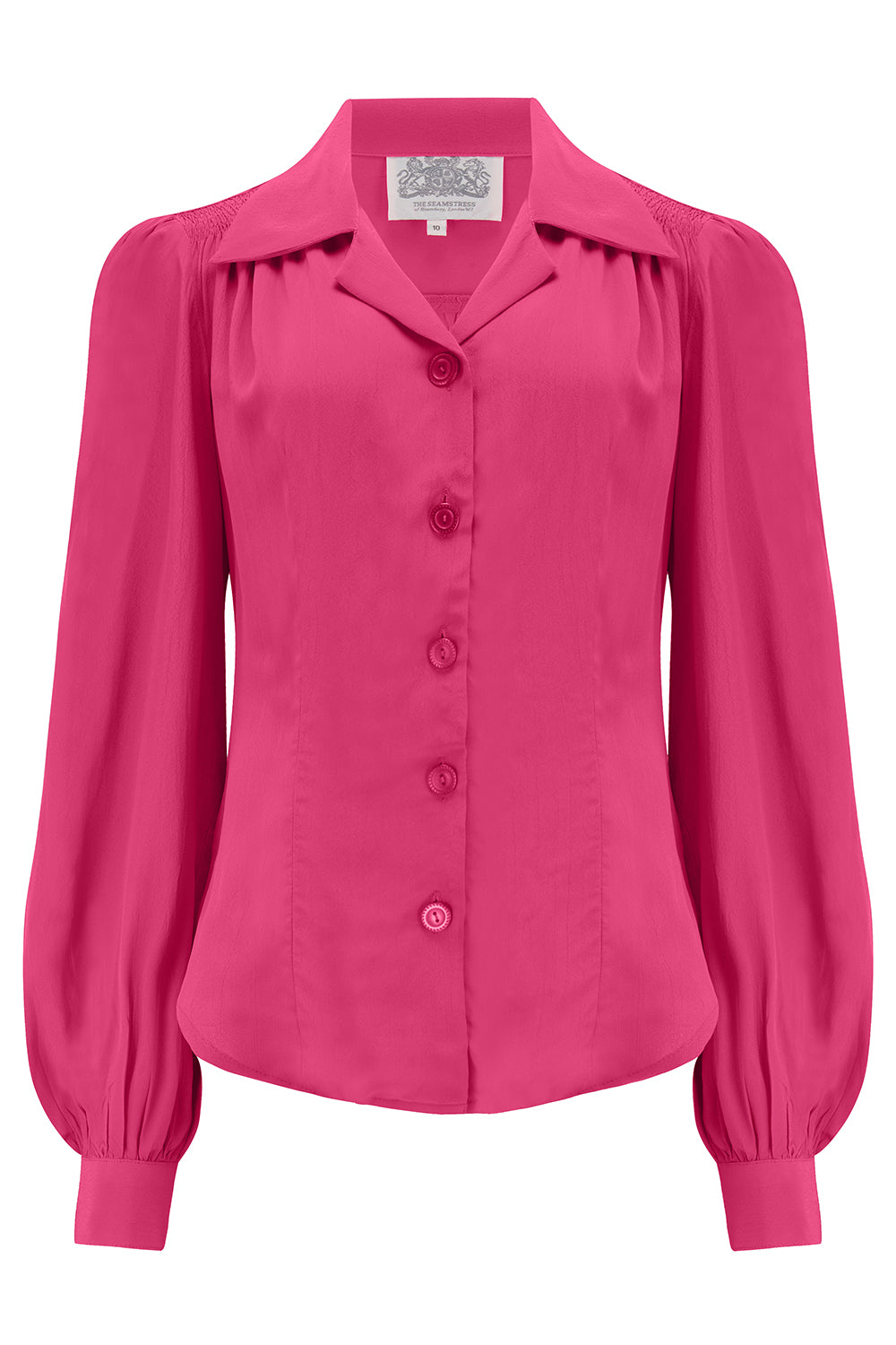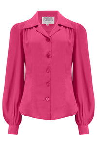 Poppy Long Sleeve Blouse in Raspberry Pink , Authentic & Classic 1940s Vintage Style