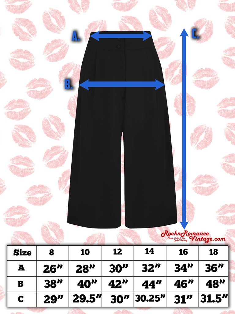 The "Sophia" Palazzo Culottes in Solid Black, Classic & Easy To Wear Vintage Inspired Style