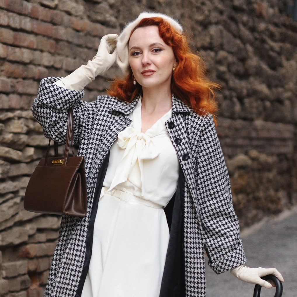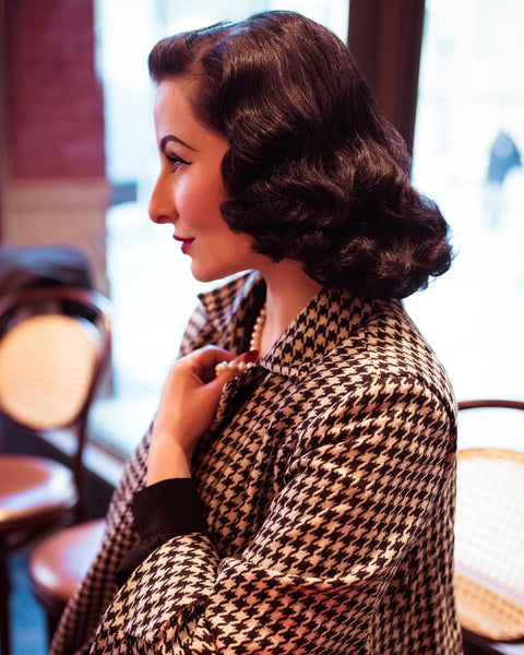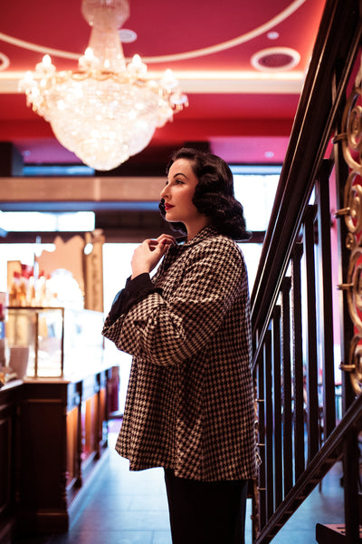 Swing Jacket in Houndstooth, Vintage 1940s Cape Style Inspired Over Coat