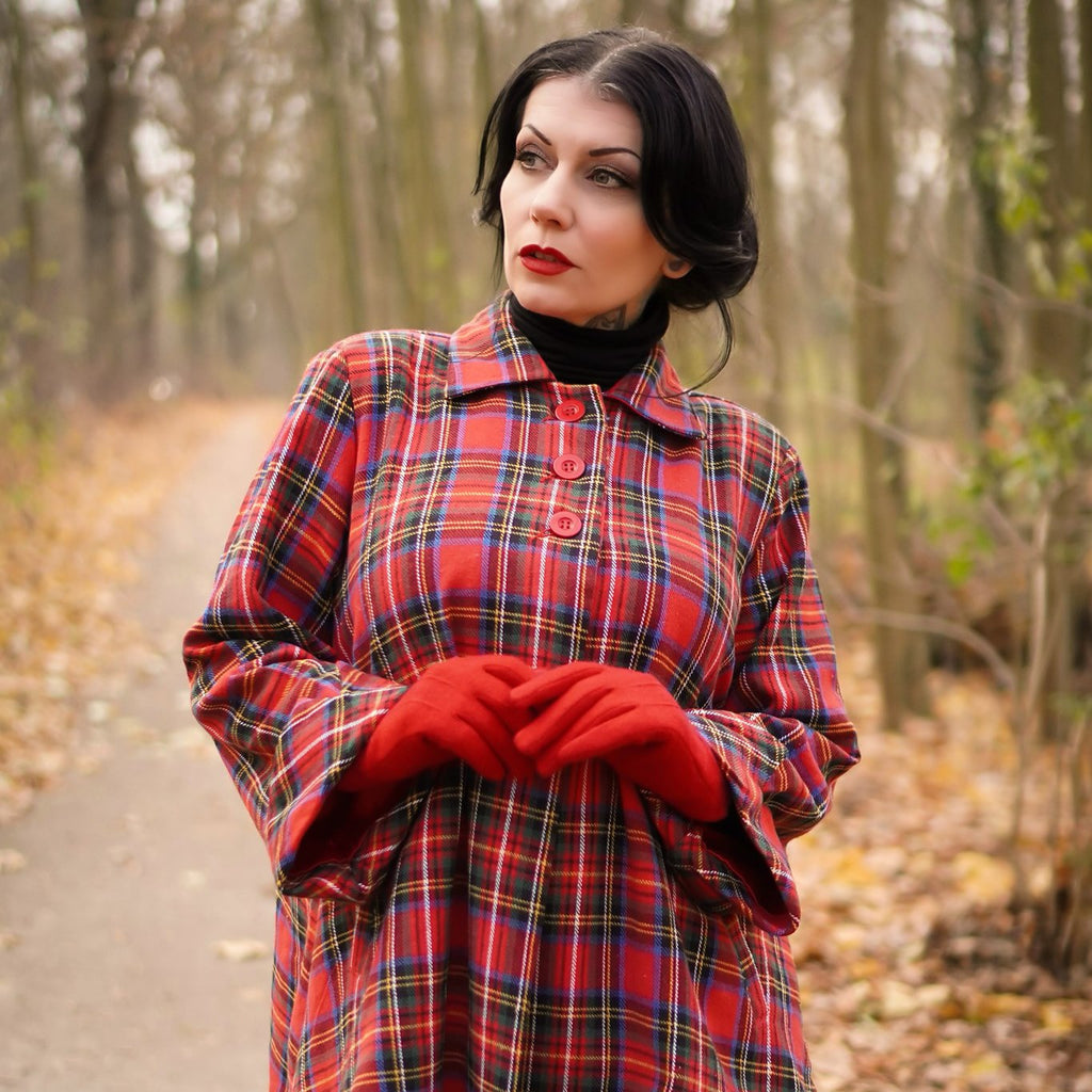 Swing Jacket in Red Tartan Check , Vintage 1940s Cape Style Inspired Over Coat