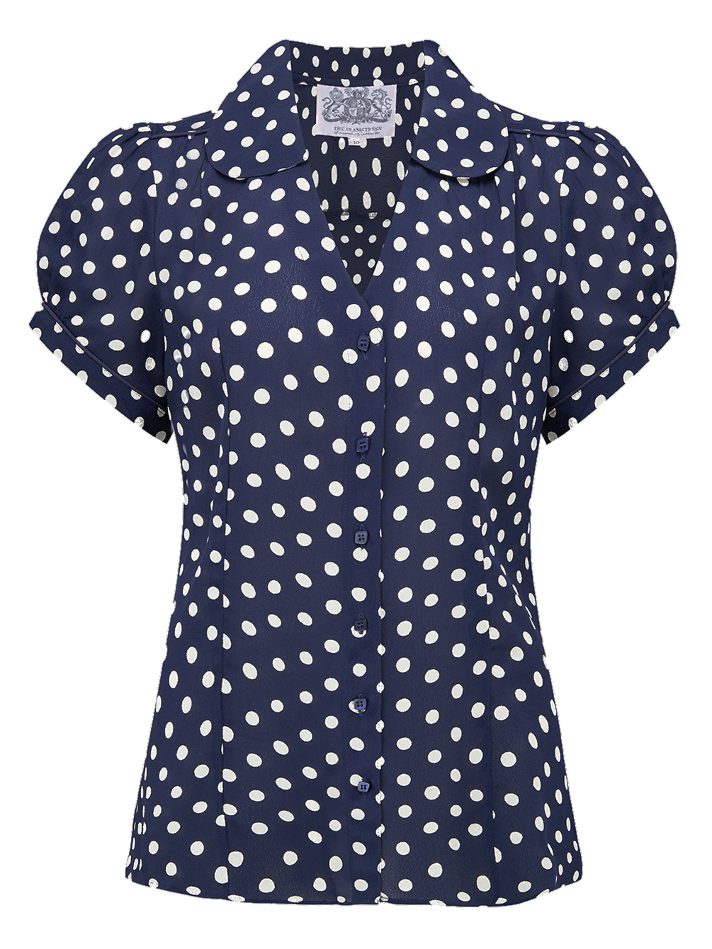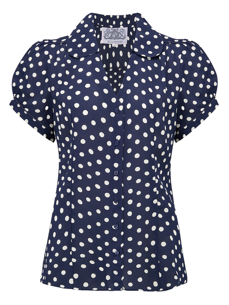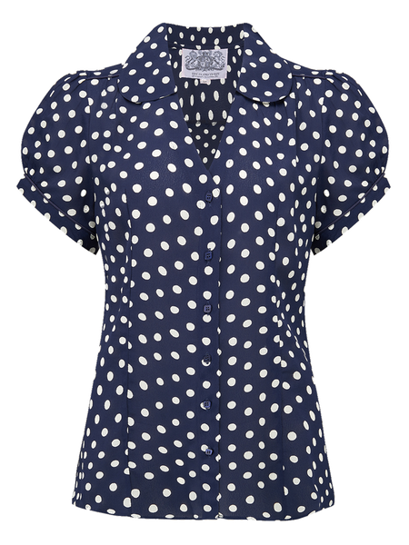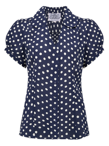 "Judy" Blouse in Navy Blue with Polka Spot, Authentic & Classic 1940s Vintage Style