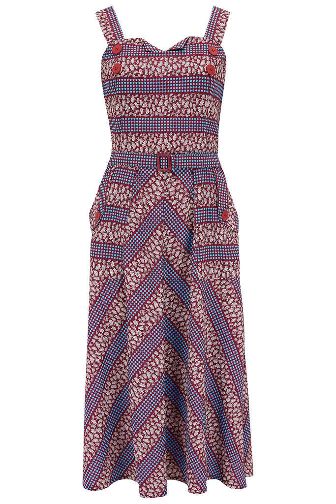 A Stunningly versatile Dress & Buttoned on Detachable Bolero set is the answer to your vintage style needs. This wonderful, easy to wear dress radiates authentic late 1940s - early 1950’s Style with the cute cut and effortless charm, The shrug style bolero is incredibly unique by the way it buttons directly onto the dress at the shoulder straps & can quickly be removed at any time for super versatile outfit.