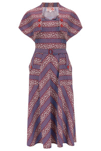 The "Ayda" 2pc Dress & Detachable Shrug Bolero Set In Dotty Deco, True Vintage Style