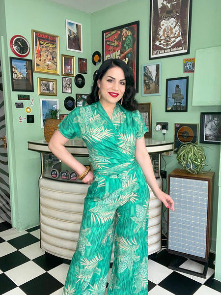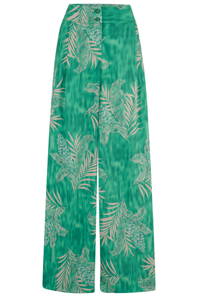 **Sample Sale** The "Sophia" Palazzo Wide Leg Trousers in Emerald Palm Print **End Of Line Item, When Its Gone Its Gone!!**