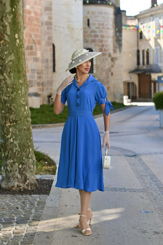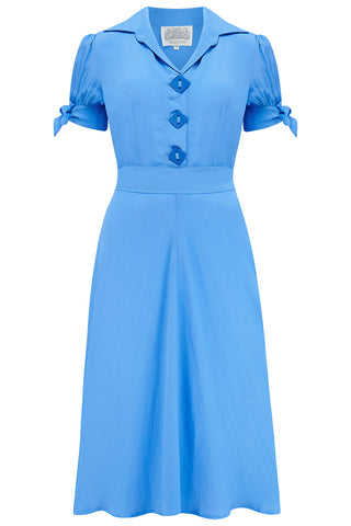 "Iris" Tea Dress in Palace Blue, Classic & Authentic 1940s Style at its Best By The Seamstress of Bloomsbury