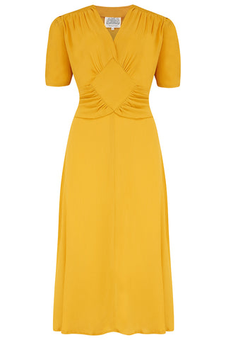 Ruby Dress in Mustard, A Classic & Authentic 1940s Vintage Inspired Style By The Seamstress Of Bloomsbury