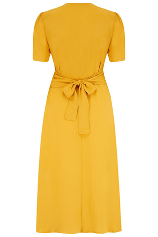 "Peggy" Wrap Dress in Mustard Yellow, Classic 1940s True Vintage Style By The Seamstress of Bloomsbury