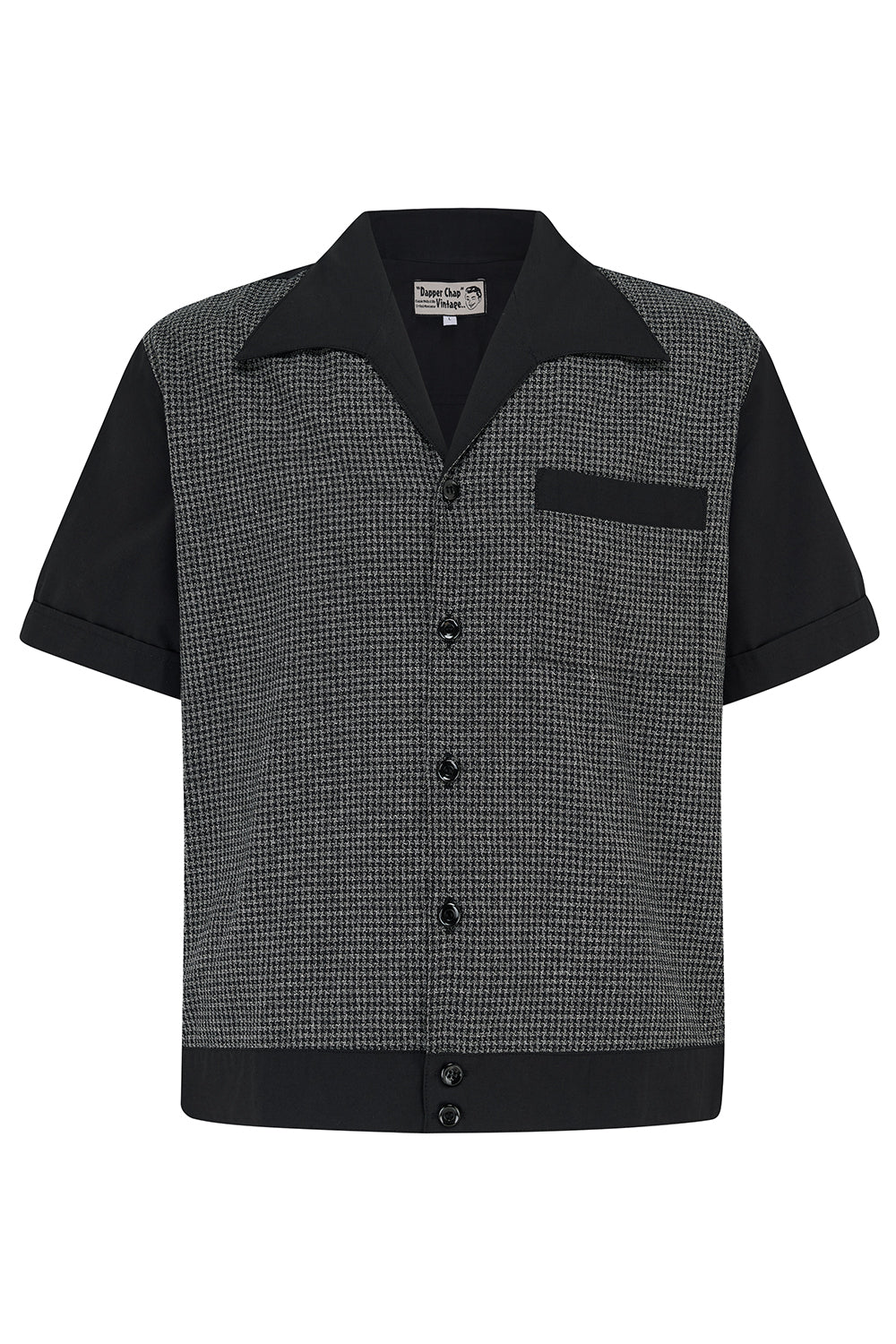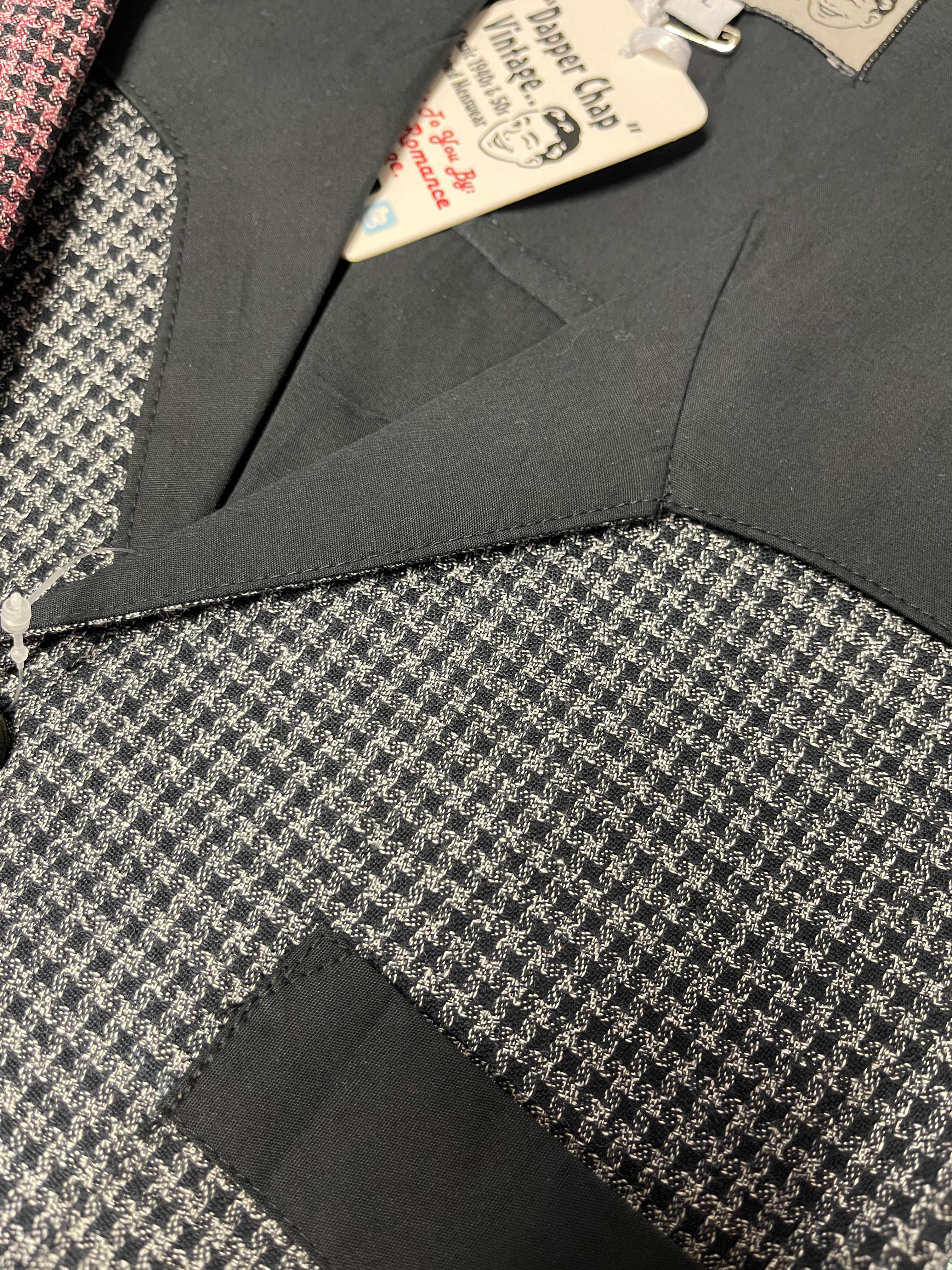 A classic 1950s Rockabilly / Rock'n'Roll shirt made in a fabulous micro houndstooth lightweight cotton weave, Hip Buttons and upper back yoke pleats for great detail and extra shoulder room when dancing.