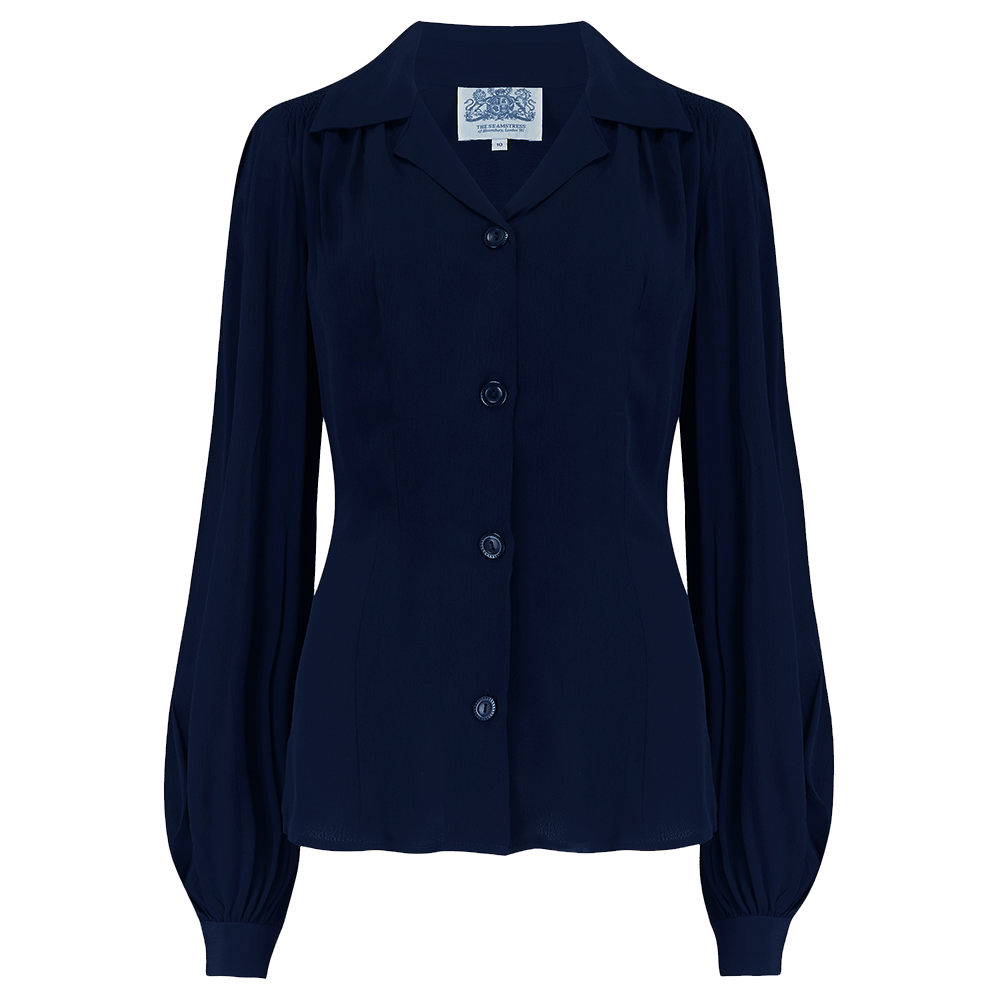 Poppy Long Sleeve Blouse in Solid Navy, Authentic & Classic 1940s Vintage Style