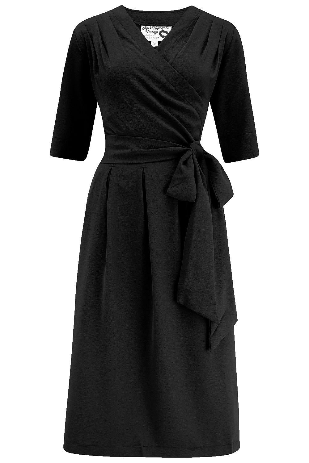The "Vivien" Full Wrap Dress in Black, True 1940s To Early 1950s Style