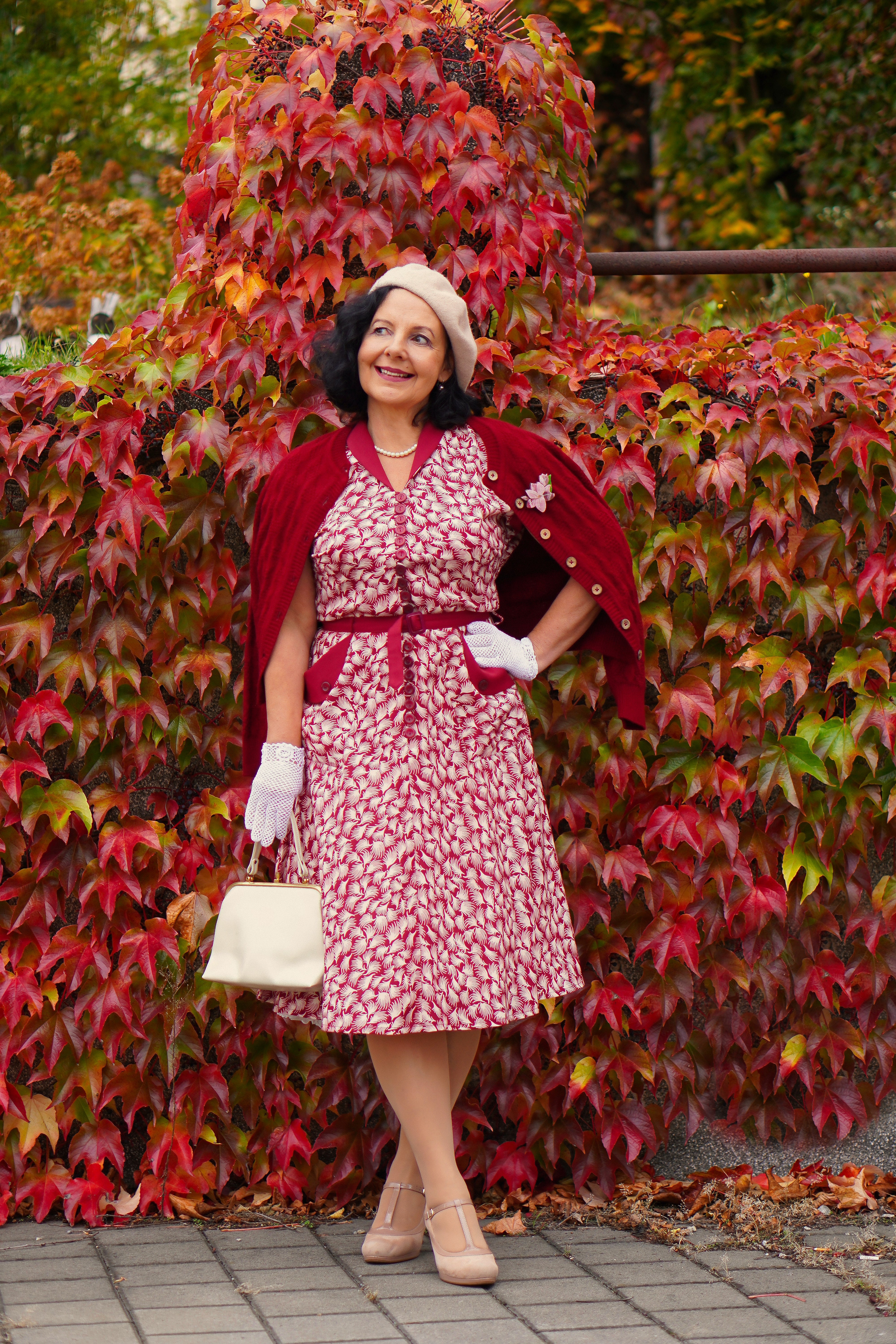 The "Casey" Dress in Wine Whisp Print, True & Authentic 1950s Vintage Style