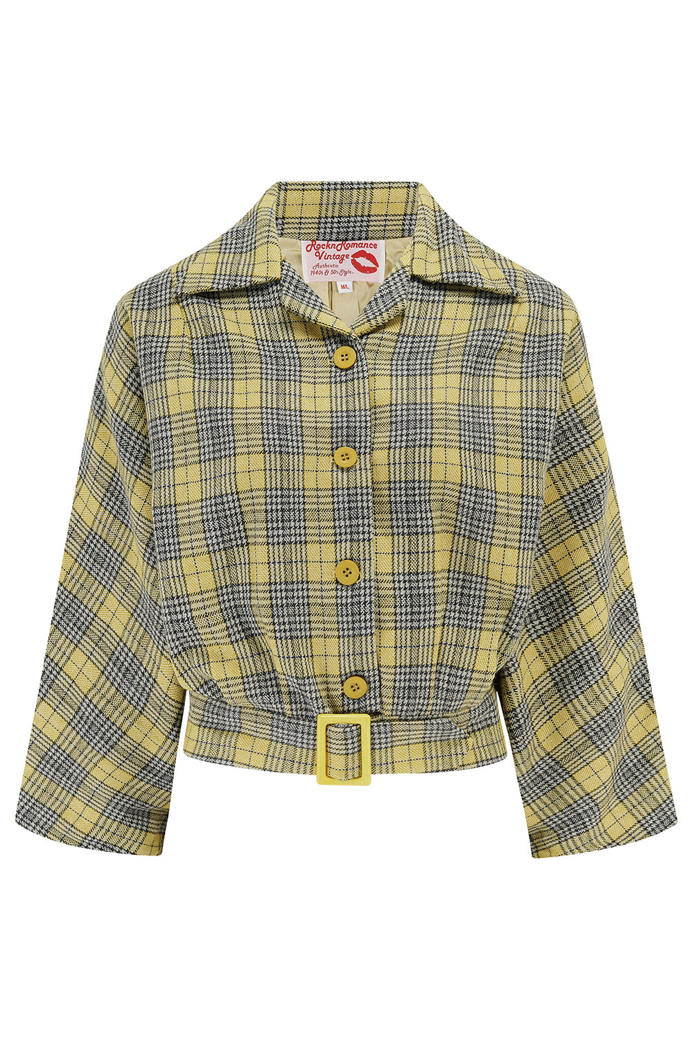 The "Be-Bop" Semi-Cropped, 3/4 Sleeve Jacket in Soft Yellow Tartan, 100% Wool .. Classic Early 50s Style (Wool No.4)