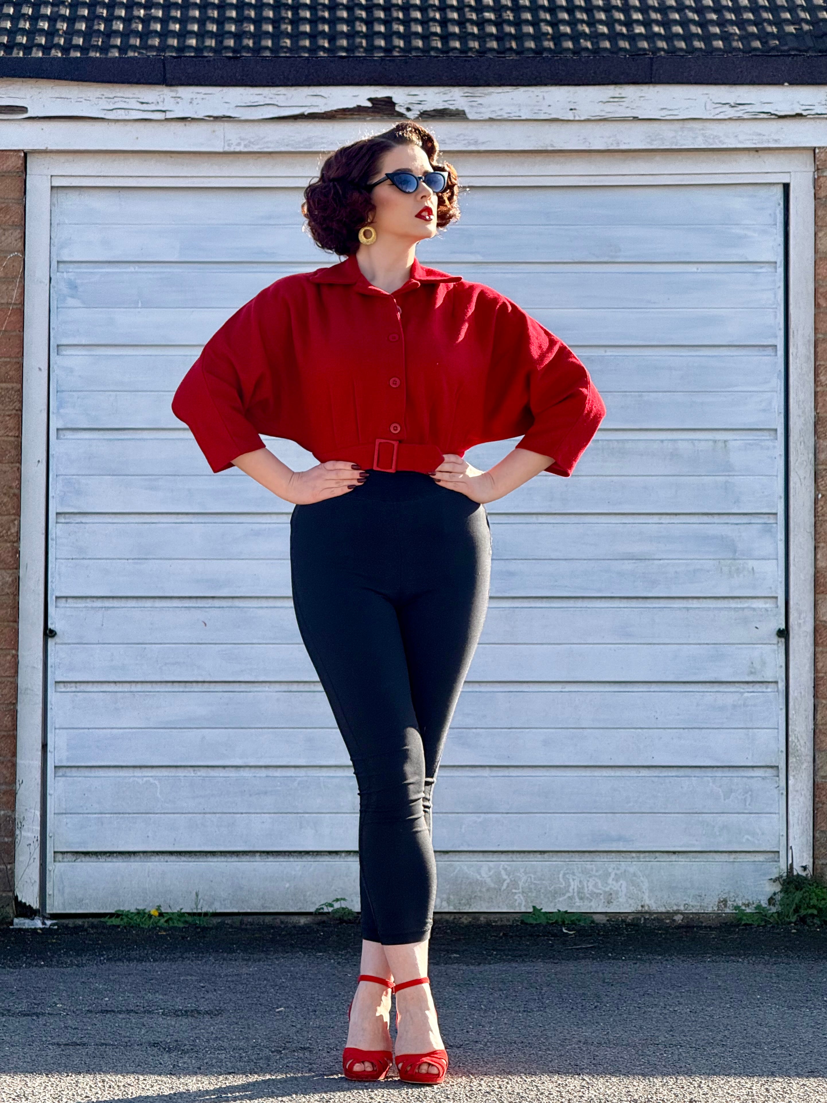 The "Be-Bop" Semi-Cropped, 3/4 Sleeve Jacket in Solid Red, 100% Wool .. Classic Early 50s Style