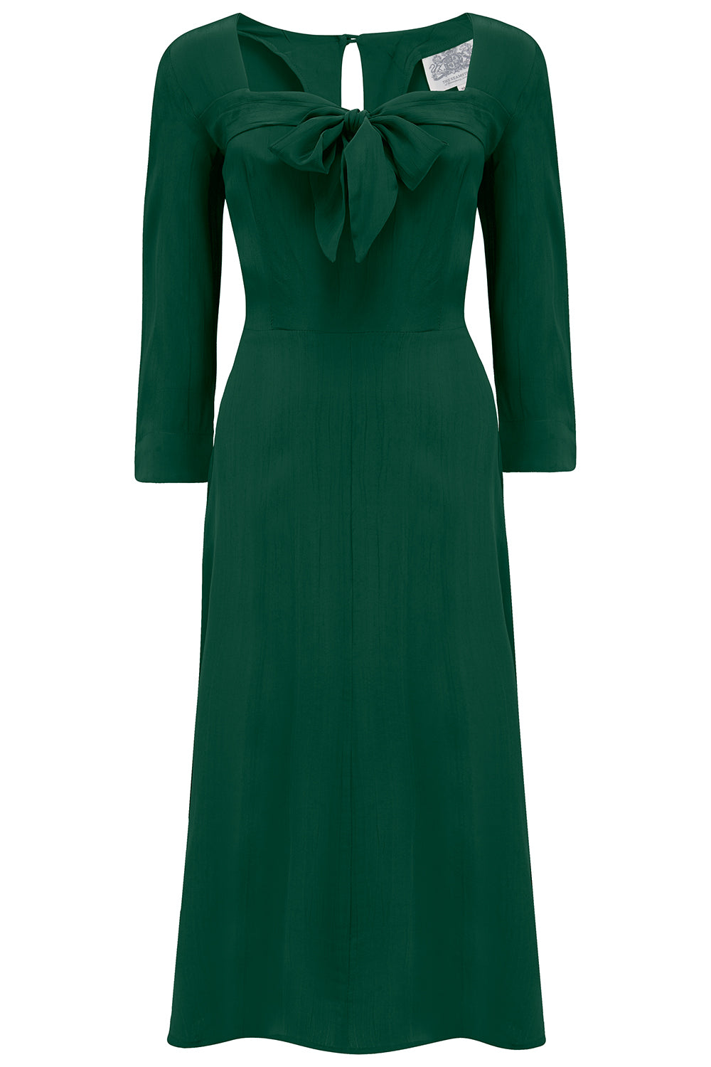 Another new and exciting addition to our 1940’s dress collection is the Joyce Dress. The epitome of stylish glamour, this dress has a Sweetheart neckline with a centre front Pussy Bow as produced by so many designers in the 40’s. It also has a keyhole opening at the centre back neck and zip fastening, with waist ties for easy fitting, and 3/4 sleeves. Just perfection for this season, love, love it.