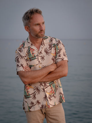 Mens "Cooper" Short Sleeved Casual Hawaiian Shirt In Tahiti Print.. 1950s Sport Shirt