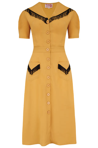 The "Dolly" Fringed Dress in Mustard, Authentic 1950s Vintage Western Style