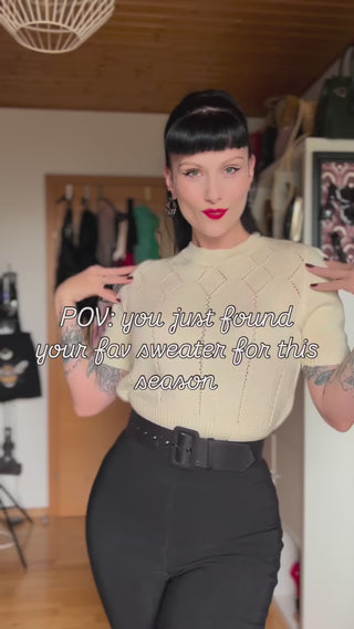 The "Frances" Short Sleeve Pullover Jumper in Cream, Classic 1940s & 50s Vintage Style