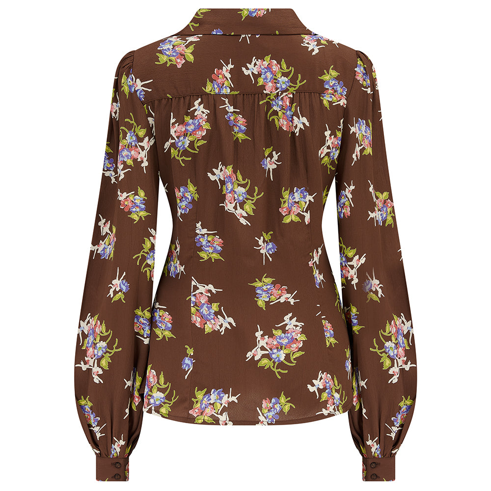Poppy Long Sleeve Blouse in Brown Floral Dancer , Authentic & Classic 1940s Vintage Style, By The Seamstress of Bloomsbury