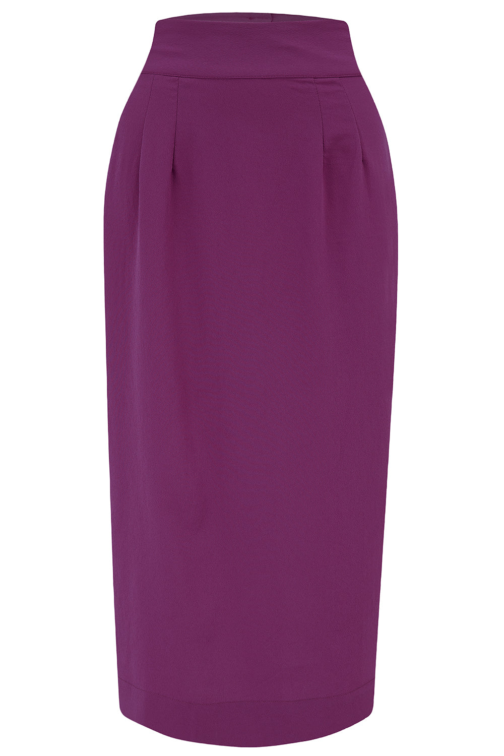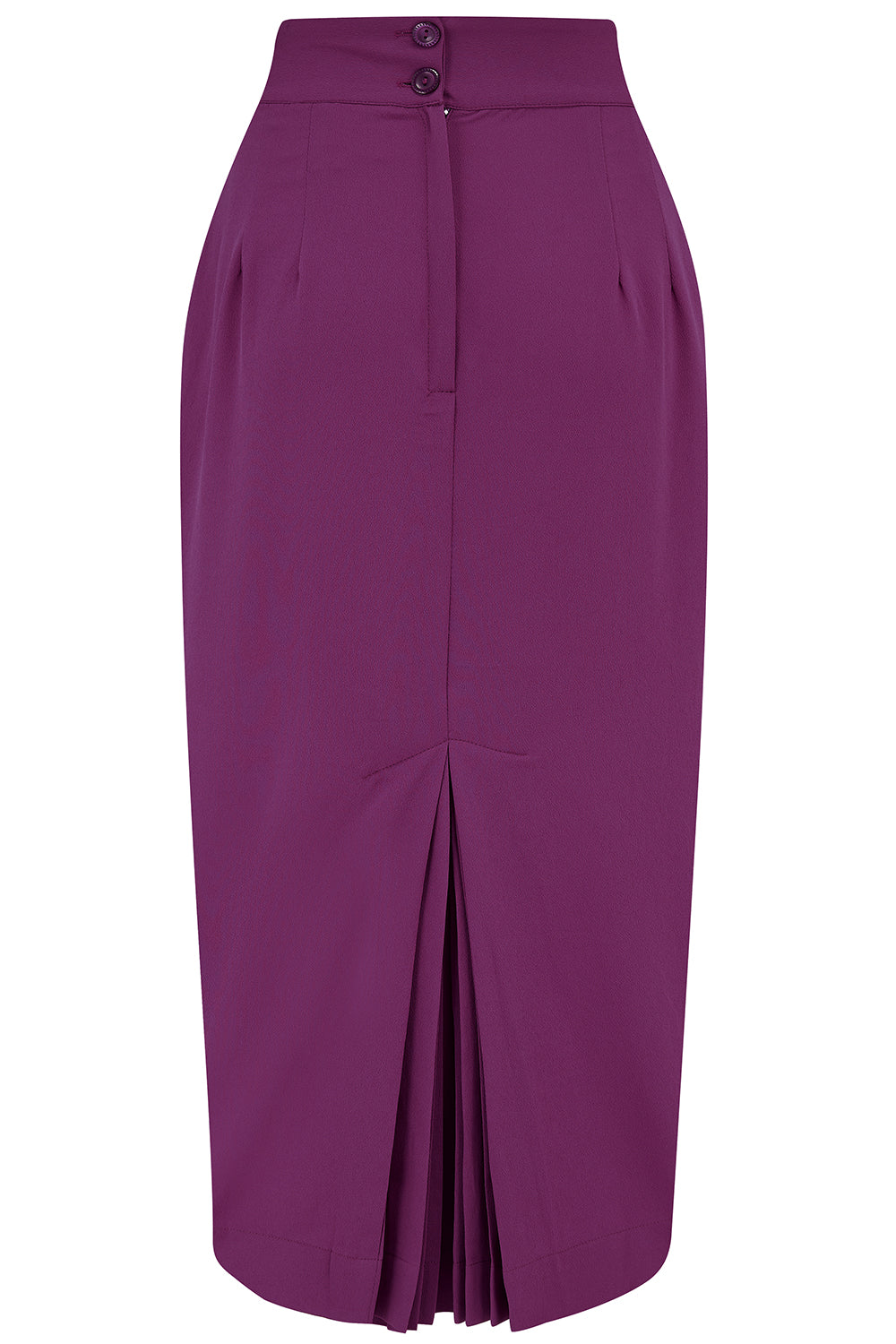 The "Jitterbug" Pencil Skirt with Kick-Pleat in Plum, Iconic 1950s Vintage Style