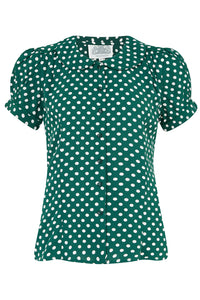 Poppy Long Sleeve Blouse in Navy Polka, Authentic & Classic 1940s Vintage Style By The Seamstress of Bloomsbury